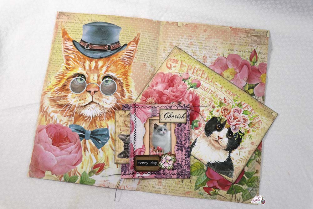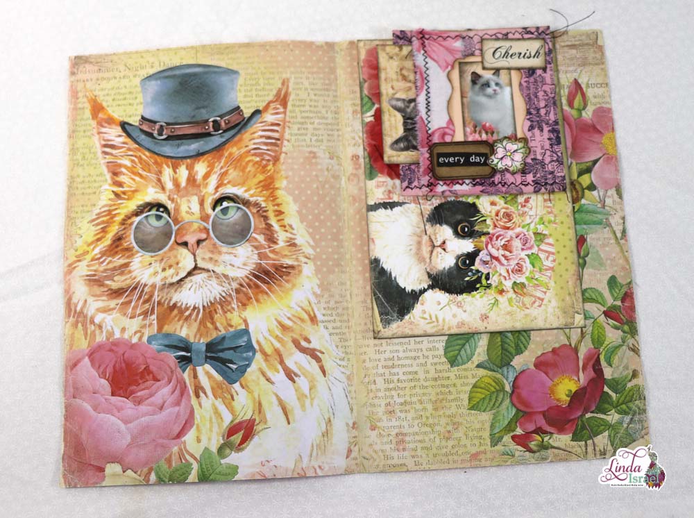A belly band is a great way to add something thick to a journal. I made the little folio a while back and thought it would be a pretty addition to this junk journal. It is full of little items to use for journaling.