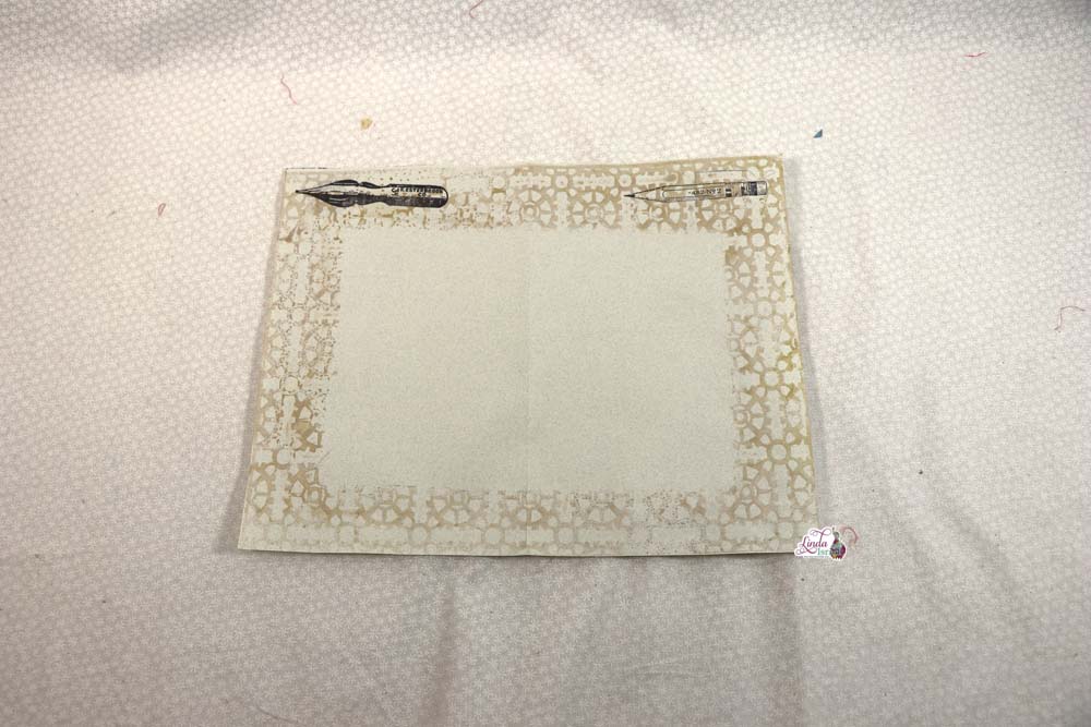 When you want to add fabric and lace to a page, but don’t want stitches to show on the other side, or if you can’t get the page in the sewing machine try this technique. Attach the fabric and lace to a strip of paper, sew and then glue the strip on the journal page.
