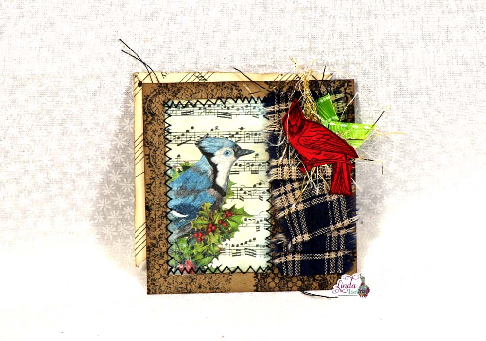 Layering the painted laser cut chipboard piece over a strip of hand dyed music on the journal card is a great way to add interest.