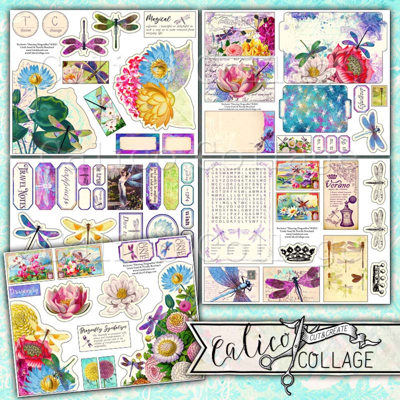 All images contained in Calico Collage's Dancing Dragonflies Digital Printable Journal Kit is protected under U.S. Copyright as well as International Copyright laws as original and/or derivative works. It is the purchaser's responsibility to be aware of these Terms of Use. By purchasing and downloading any Calico Collage's Digital Collage Sheets you are agreeing to abide by the following terms: