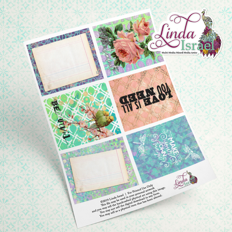These Digital Good Vibes Mixed Media Journal Cards are some of my mixed media images and digitally enhanced with text and graphics added by Norella Bouchard of Calico Collage. One digital file with six journal cards. FREEBIE to my loyal friends and fans. Thank you for supporting me!