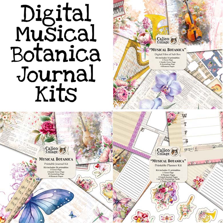 Digital Musical Botanica Journal Kits. Three digital kits and you get the digital version of the mini kit sized and ready to print.