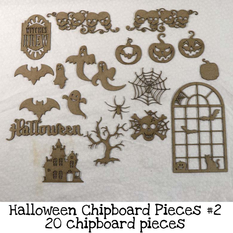 Twenty Halloween Chipboard Pieces #2 included in this set