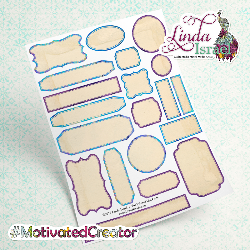 These Mixed Colorful Labels Digital Download were created by Norella Bouchard of Calico Collage. Norella used scans of gel prints for the borders on the labels. I love how she is able to take something I created and turn it into a digital image that can be printed over and over.