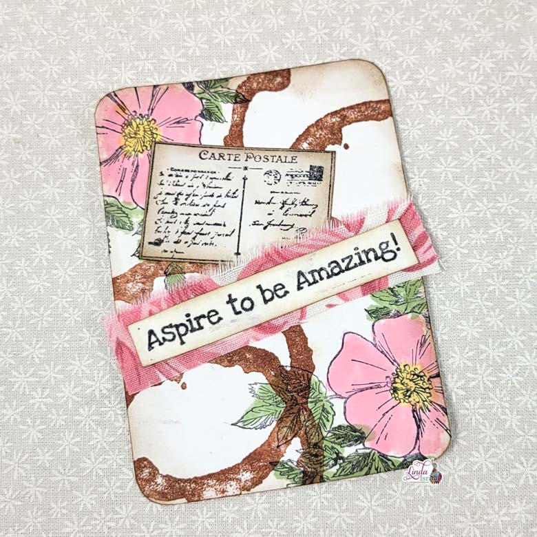 This project is a great way to use up book pages. Adding rubber stamped images alters the look of the book page and allows a lot of creativity. Try changing the color of book pages with Tattered Angels Glimmer Mists or even acrylic paint and then see how colorful your art can become.