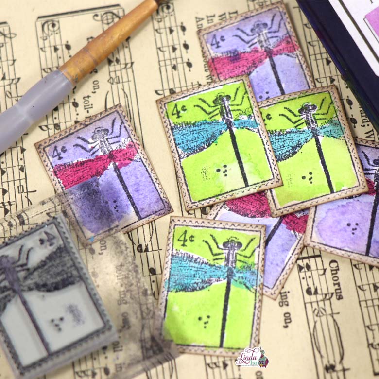 Norella of Calico Collage designed this Dragonfly Postage Stamp. She created a similar image for the Dancing Dragonflies Creative kits and I loved it so much I asked if she would make it into a stamp. I think we make a great team, don’t you? Thank you Norella!